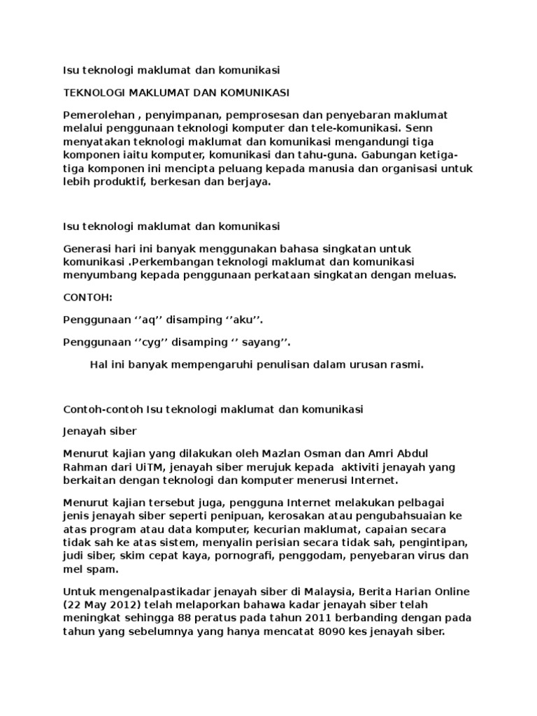 Isu Teknologi Maklumat Dan Komunikasi Pdf