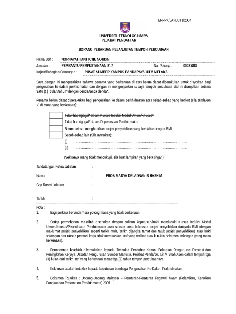 Contoh Surat Lanjutan Tempoh Percubaan